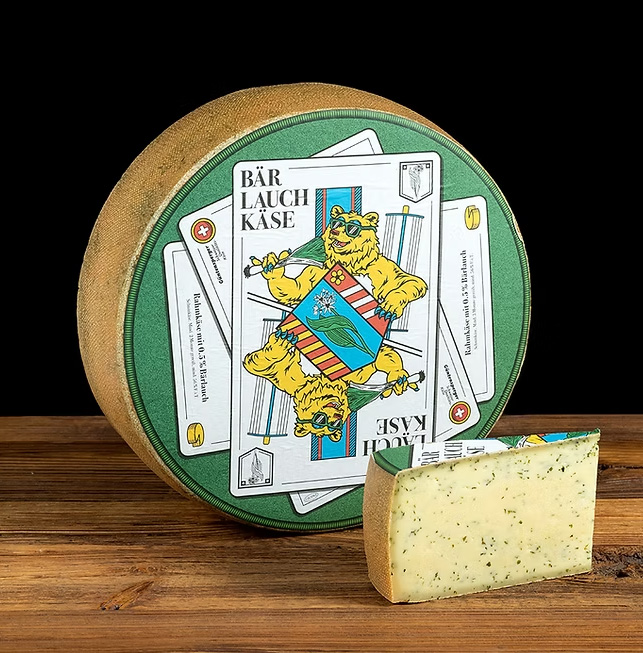 Completing the trio is Bärlauchkäse, a semi-hard cheese infused with dried wild garlic leaves. Also produced by Güntensperger Käse AG, this cheese balances delicate garlic notes with the rounded sweetness of Swiss milk.